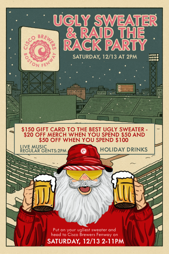 Cisco Fenway is hosting an Ugly Sweater + Raid the Rack Party on Saturday, December 13 at 2pm, where Cisco provides huge discounts on merchandise when you spend onsite! $20 off merchandise, food, and gift cards when you spend $50, $50 off if you spend $100 (alcohol is not included!).
